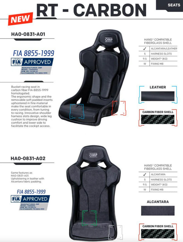 OMP RT Carbon Seat - Leather Black (FIA 8855-1999)